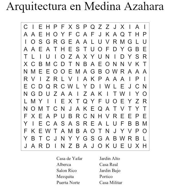 Las palabras propias de Medina Azahara se han escondido entre otras letras.